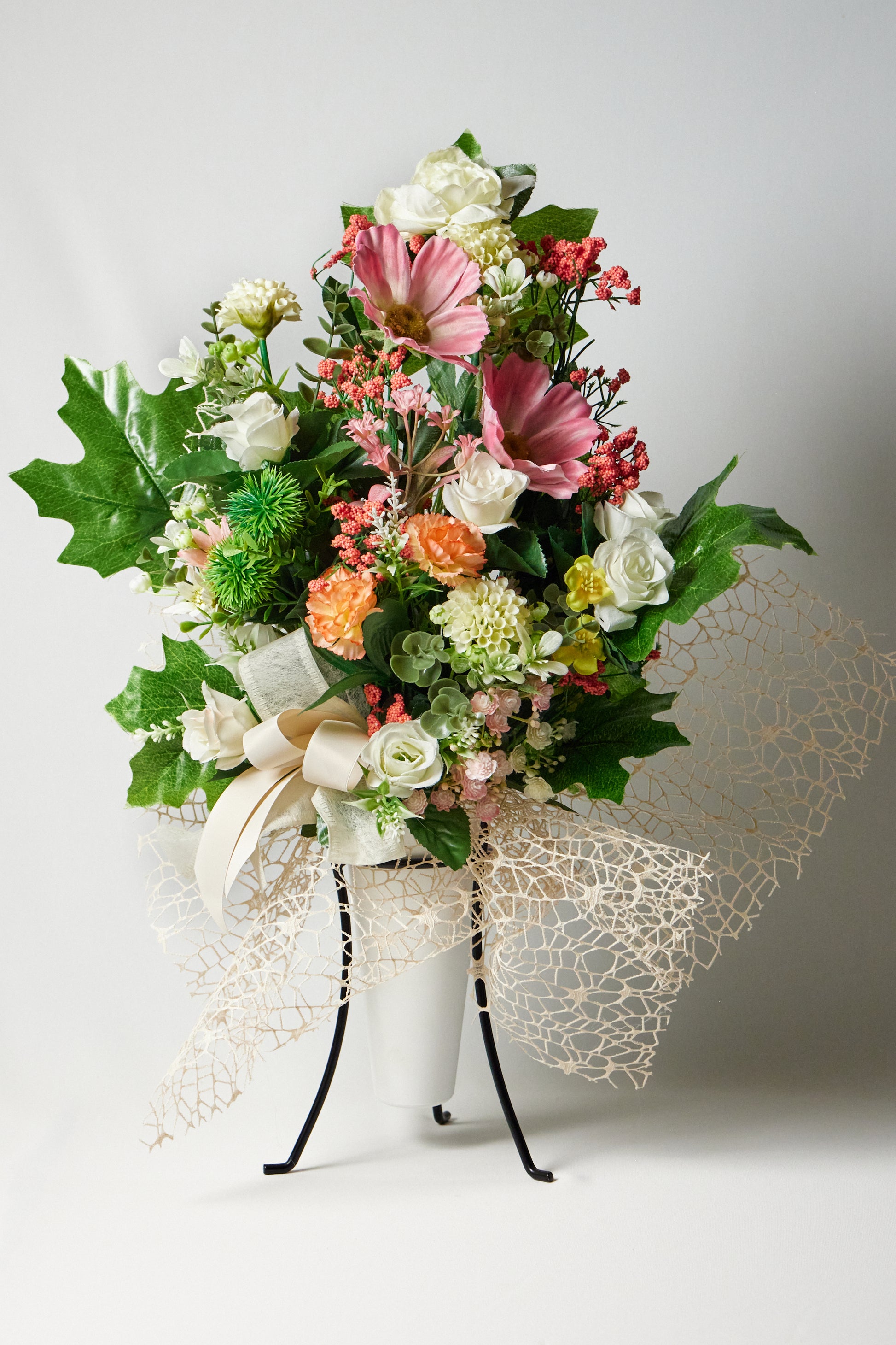 Disponible en flor natural o artificial segons prefereixis: la flor natural aporta frescor i aroma pel moment de l'homenatge; la versió artificial ofereix durabilitat per als que vulguin conservar el record.