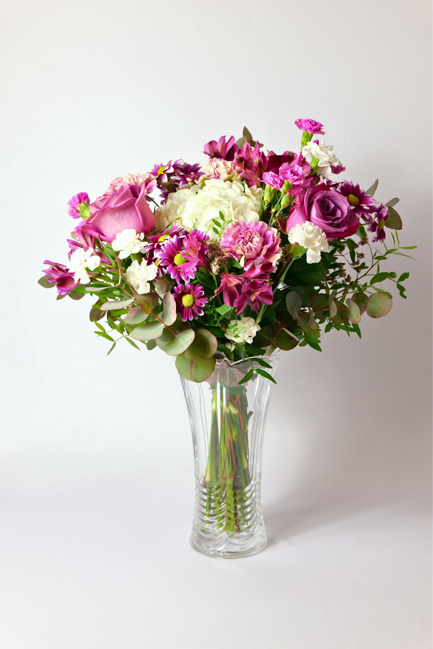 La noblesa té color: violeta profund amb centelleigs blancs. Un ram que converteix qualsevol espai en saló de recepció.