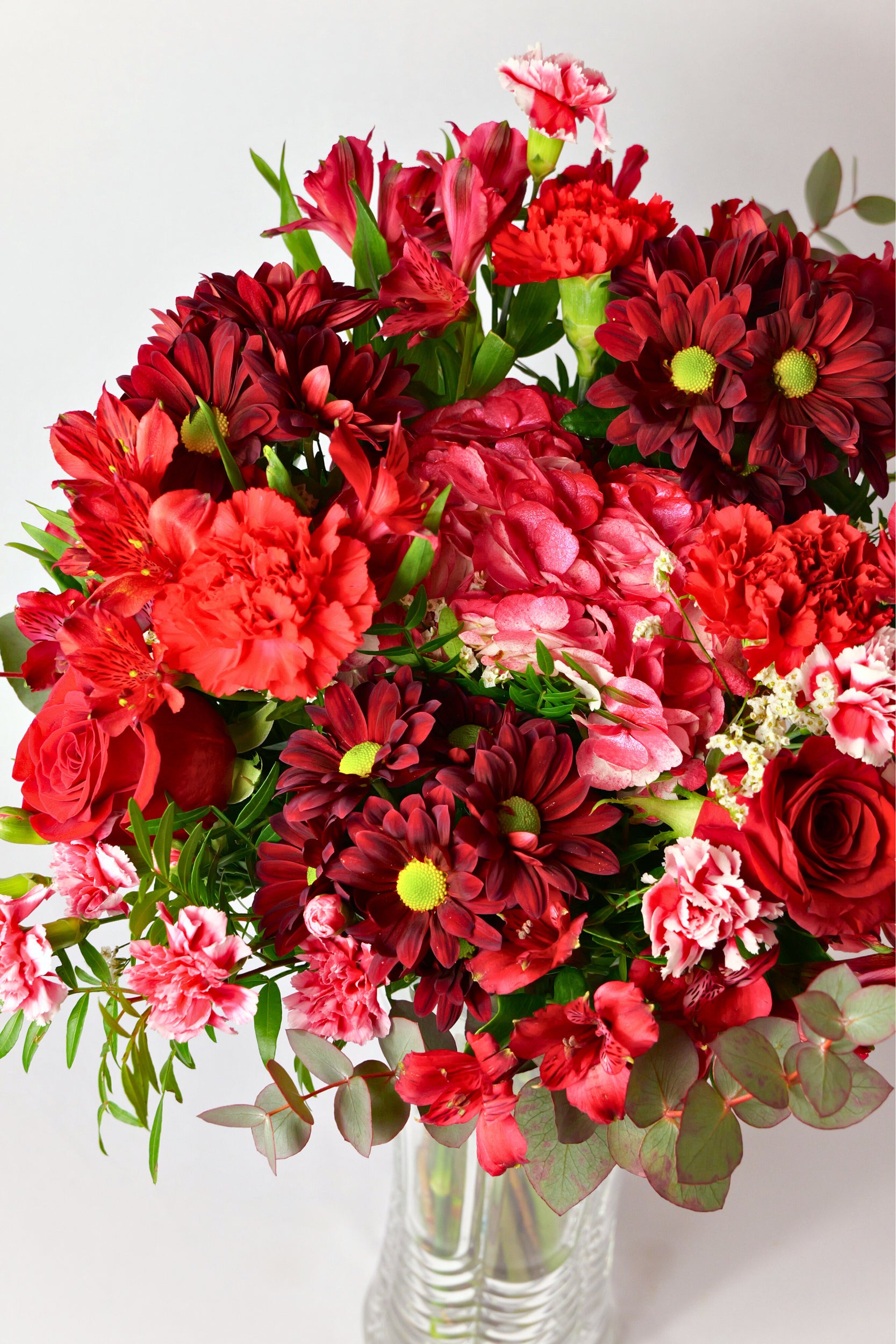 El rojo no admite medias tintas. Tampoco este ramo.